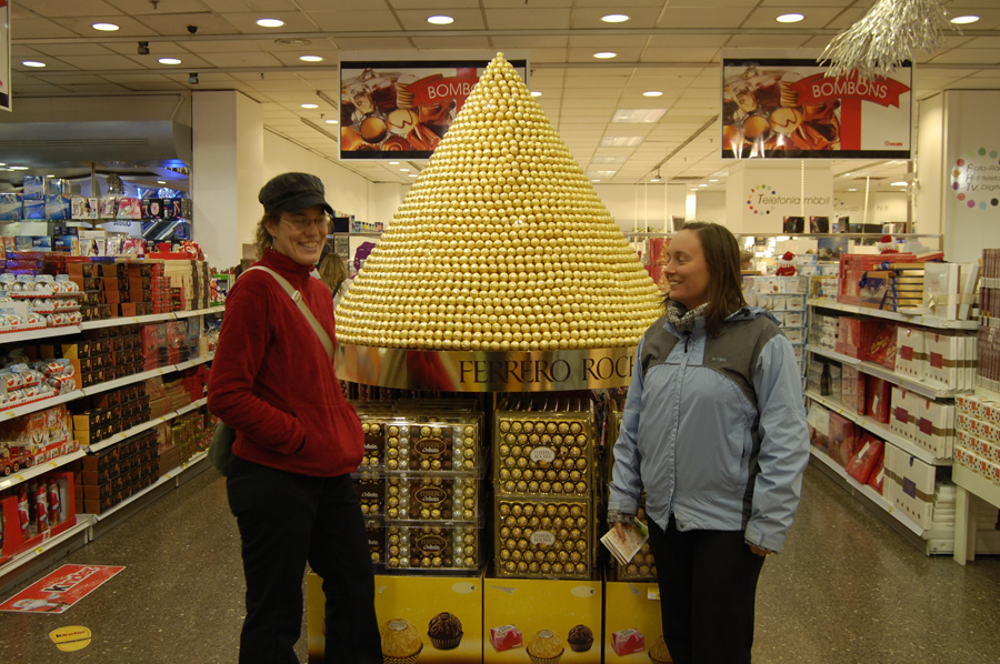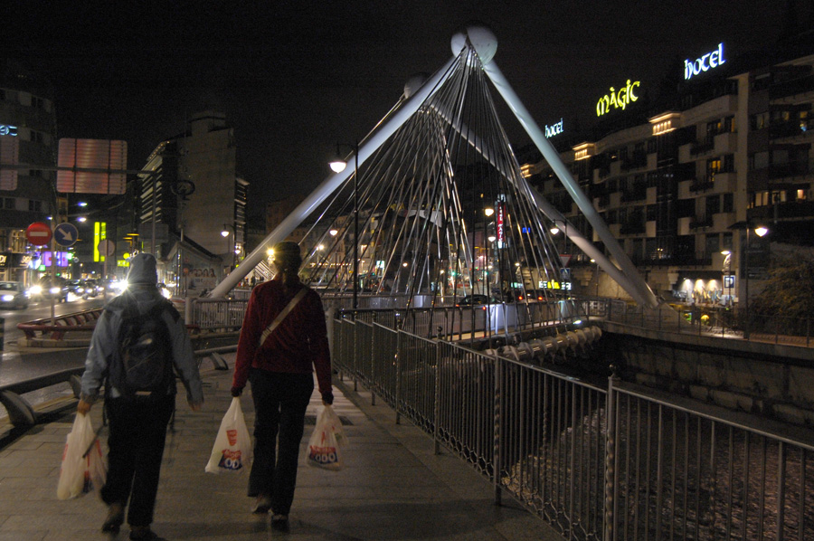The capital (Andorra la Vella) was slightly larger, and situated well in a valley, abrupt mountains beginning at the edges of the city. This place also seemed more like a scene out of star wars or something, with the famous “Caldea” hot springs/pool in the middle, it’s obelisk of glass protruding high above any other building. Walking around, I was astonished by the immense number of pietons, most of whom were french/spanish, with some americans mingled in (the fatter ones, pretty easy to pinpoint 😀 ). Here too, the sizes of everything was enormous – like the huge 5 kilo bottle of Nutella.