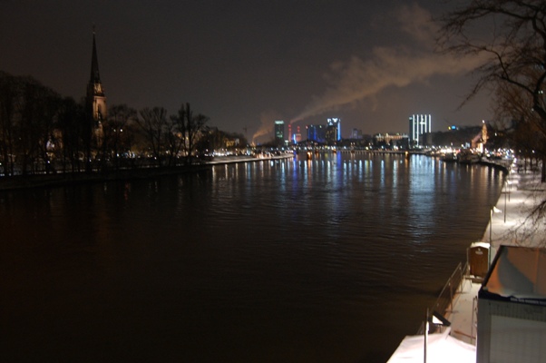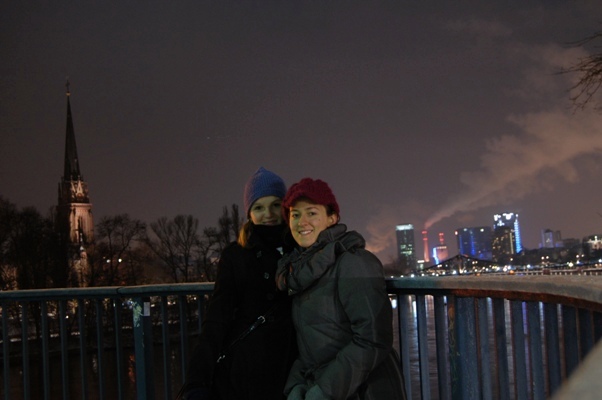 Once he picked me up, we were on our way through Germany, to Austria, Hungary, and finally Transylvannia. First stop: Frankfurt (besides the 5 other short ones between Bruxelles and Frankfurt to clean off the windshield because the fluid was frozen). It was -10C outside, with 20 cm snow on the ground from the night before. We met a friend who showed us a hostel, then her and I walked around the center part of town. We went into a mall, where the shops were closed, but the area around was open. The architecture of this building was amazing. The architect used triangle shaped glass panes to construct a mathematically sound three-dimensional saddle tunneling into a cylinder which descended through the middle of the mall. All of this was topped by the longest escalator existing in a mall. Along the river Main at night was similar to Budapest, except the buildings are a little farther away from the river banks. Despite the frigid temperatures, there were mice everywhere scampering around in the snow. These little creatures half the size of my fist scaled two flights of stairs faster than I could have run up them. Maybe they did it for exercice so they didn’t freeze to death? I have never seen this many mice in one place at once.