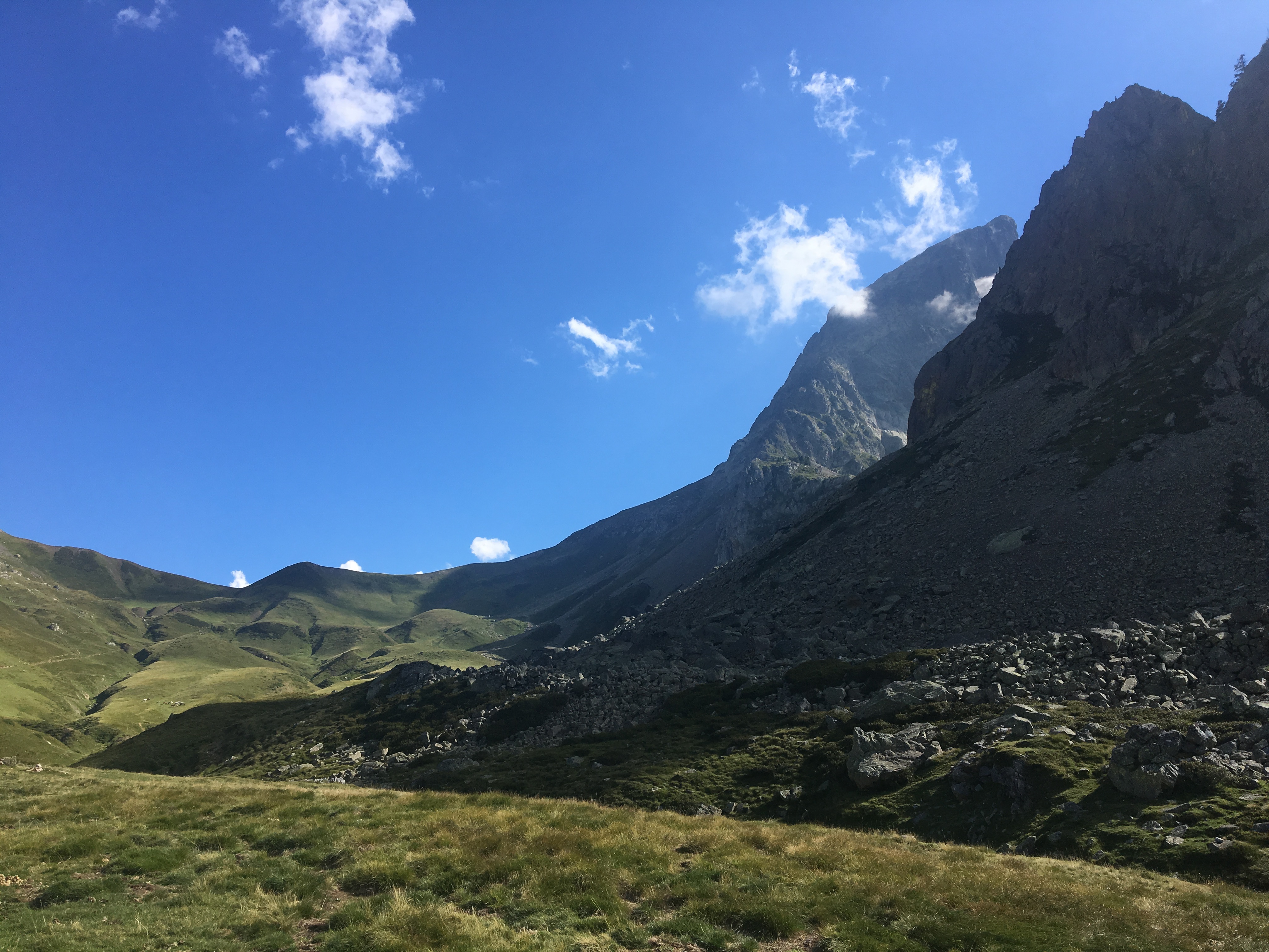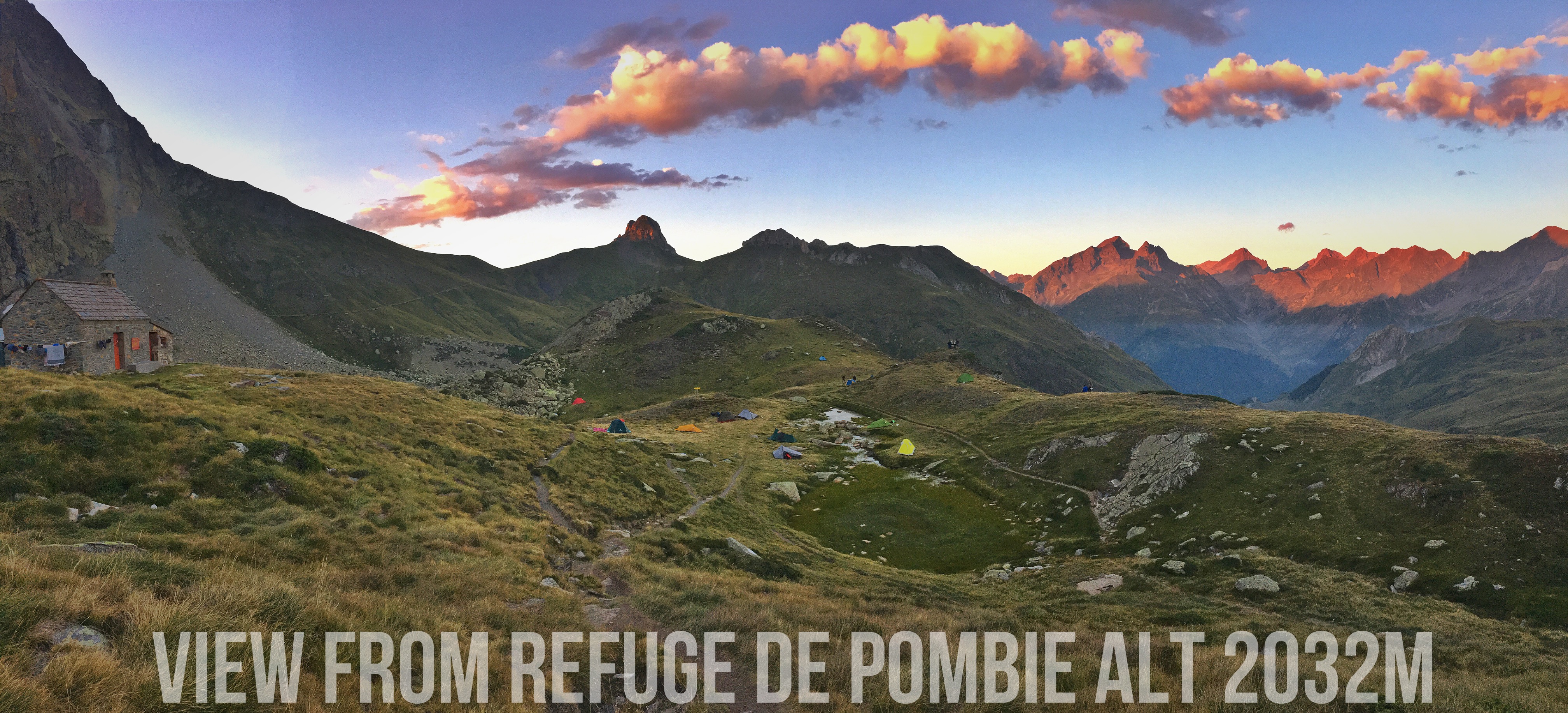 This time it was with my life partner and two of my favorite people in the world. We even brought a rope, as we expect the peak to be a series of easier 5.3- 5.4 climbs – which we will do tomorrow. Six and seven-tenth km, rolling hills, many sheep, cows, and horses in the shadow of high-jutting peaks later, we reached the refuge de Pombie at 2032m.